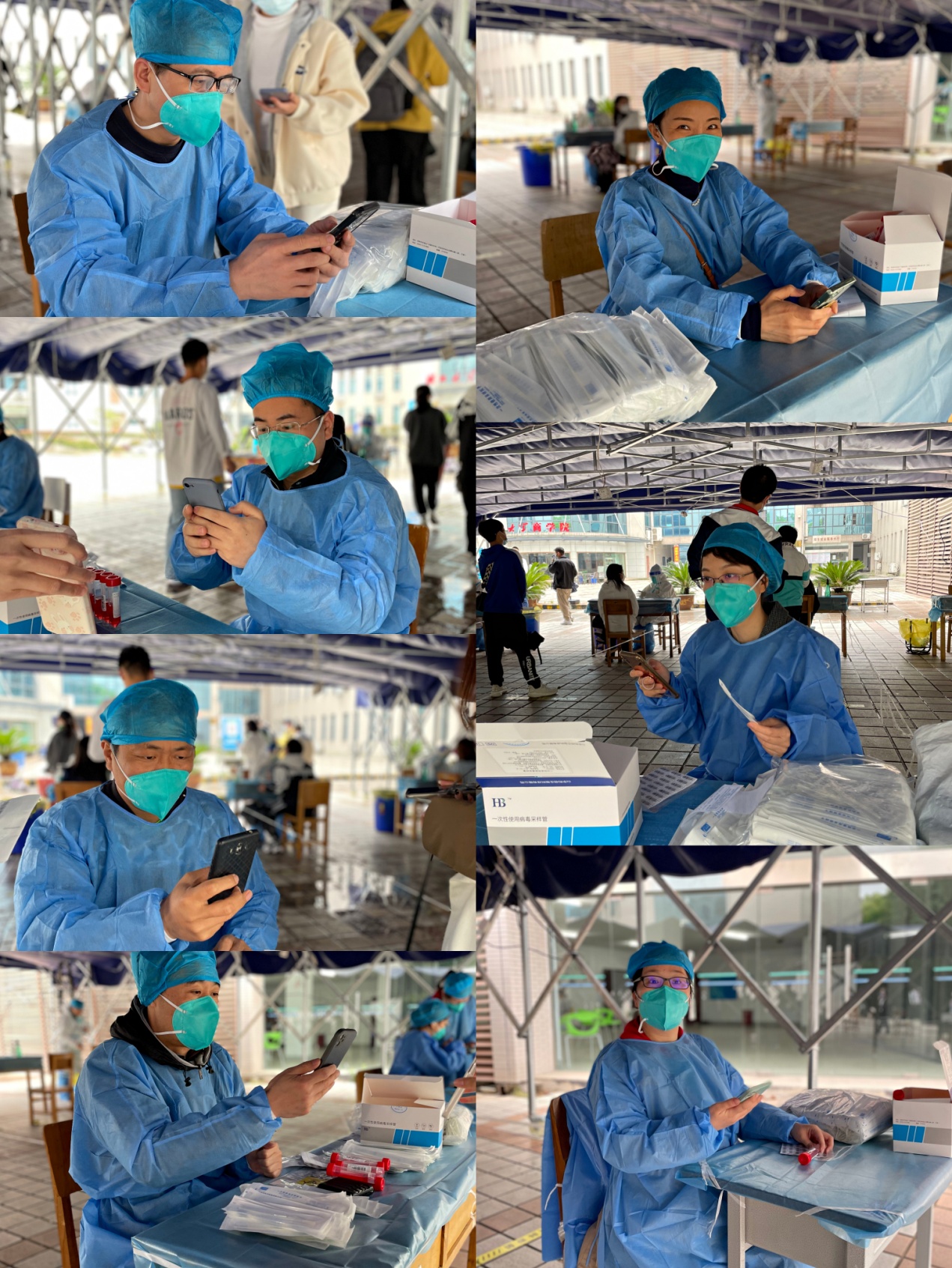 手机扫码、核对信息、发放棉签、确认放行……看似很简单的程序和步骤,在小心翼翼确保每一个信息无误和保证提交之后,在一个姿势保持几个小时之后,在盯着一个手机界面看了几百次之后,每个志愿者都深深感受到了防疫工作的辛苦和不易,并油然而生了尽一份力的自豪感,也为积极配合检测工作的师生们点赞。