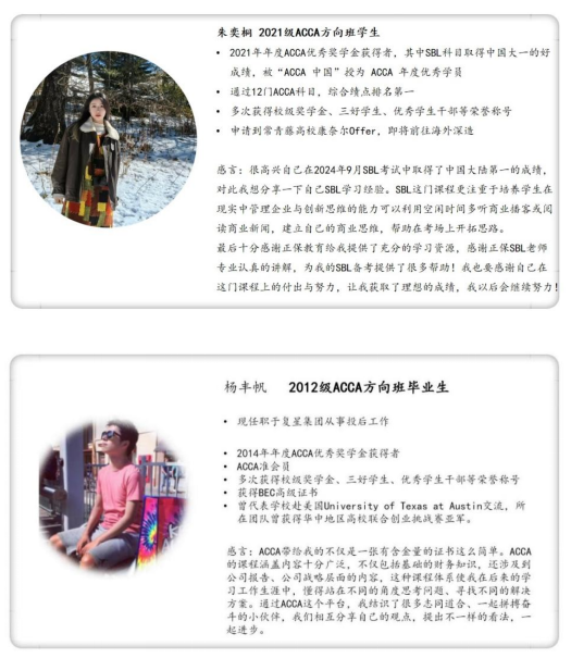 五、商学院会计学系ACCA方向班部分优秀学生代表: